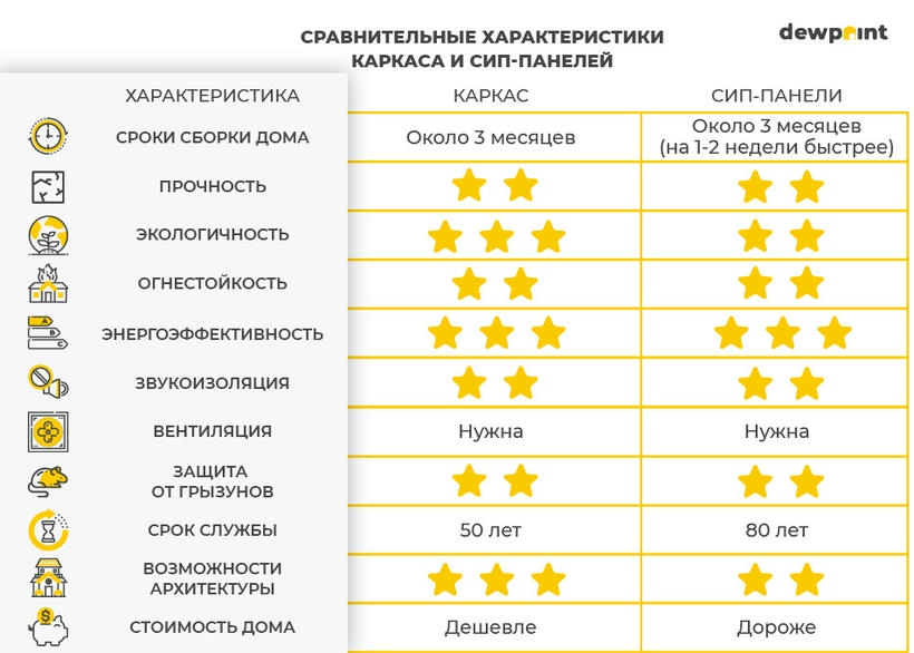 Итак, выбор за вами! Построить каркасный дом или дом из СИП-панелей — оба варианта достаточно хороши! Специалисты строительной компании DEWPOINT с удовольствием проконсультируют вас по выбору технологии, проектированию частного дома, а также возьмут весь процесс строительства на себя!