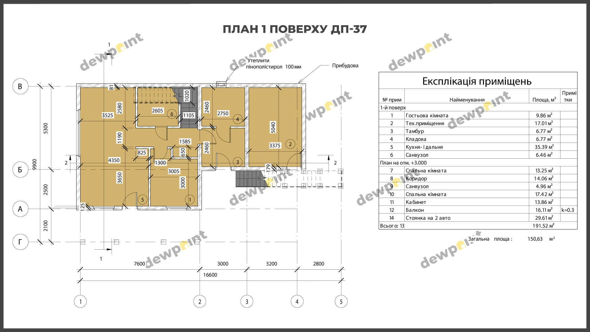 | * В просчет не включены: террасы, навесы, балконы, дымоходы, камины, лестница на 2 этаж, межкомнатные двери |