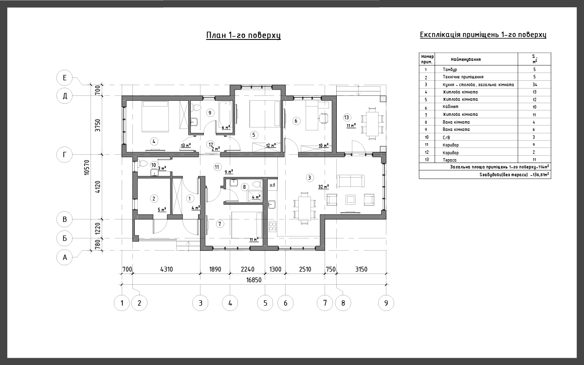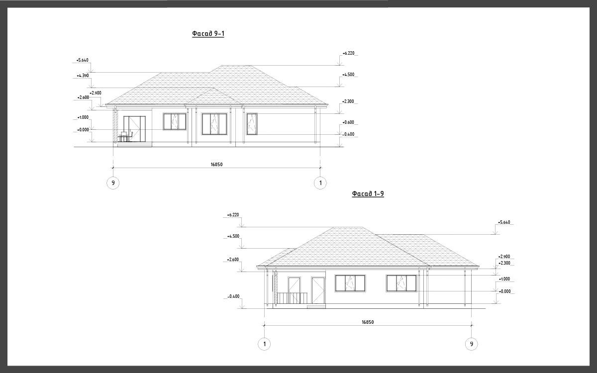 Большой 1-этажный дом площадью 137 кв.м. имеет наружные габариты 10,6 на 16,8 метров.