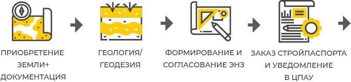 На основании ЭНЗ необходимо заказать строительный паспорт и подать уведомление о начале строительных работ в Цент предоставления административных услуг (ЦПАУ) лично либо онлайн https://e-dabi.gov.ua. По окончанию работ вызывают инженера-техника для изготовления технического паспорта (ранее это делало БТИ, сейчас частные эксперты). Далее подается декларация о вводе объекта в эксплуатацию, присваивается почтовый адрес. После чего у нотариуса регистрируется право собственности на дом.