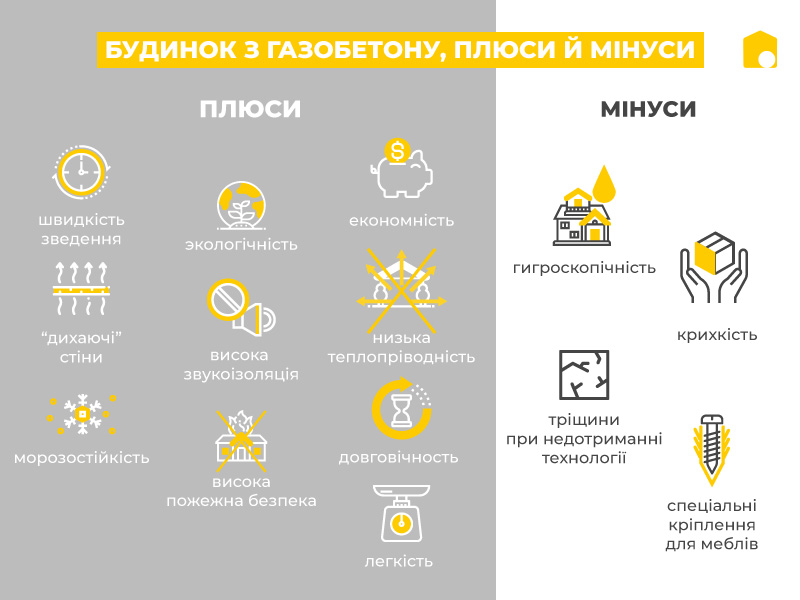 Незважаючи на те, що газобетон має широкий спектр позитивних моментів, він має свої мінуси: