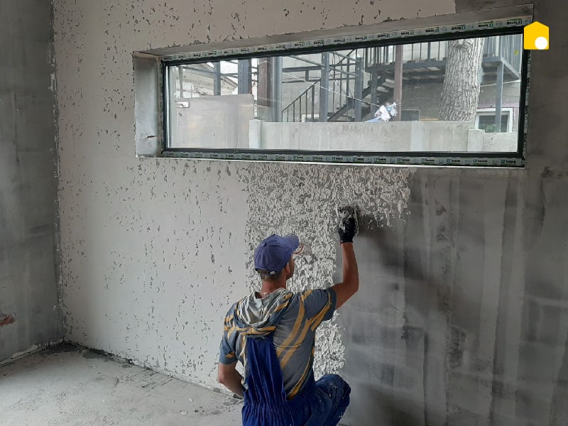 Було виконано зовнішнє утеплення фасаду базальтовою ватою 100 мм, з подальшою штукатуркою. 2 поверх обшивався деревом, що перекликається зі звисами покрівлі та елементами внутрішнього оздоблення, також виконаними у стилі «лофт».