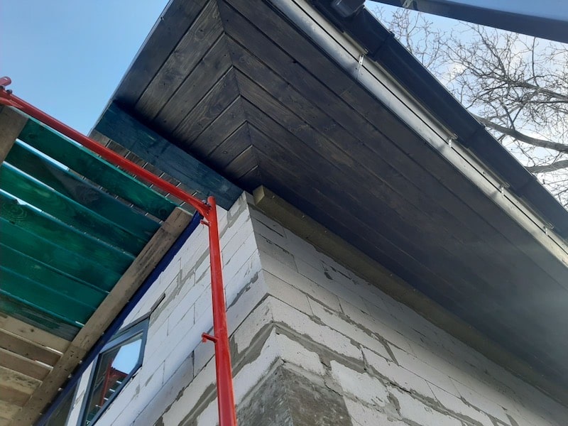 Звиси покрівлі виступають на 1 м, підшиті знизу деревом, що виглядає дуже красиво!