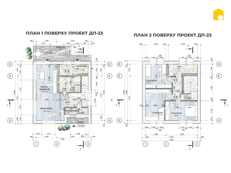Стіни 2 мансардного поверху – 1,5 м, що дозволяє повноцінно використовувати простір, замість непотрібного горища. Також були встановлені мансардні вікна VELUX (Бельгія).