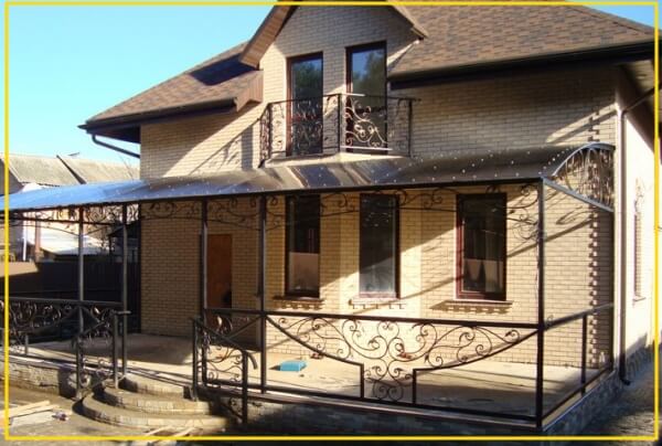 Міцний і довговічний. Але якщо хочете зробити терасу своїми руками, то не кожен впорається самостійно — потрібне зварювання та навички роботи з металом. Бажання прикрасити терасу візерунками або поруччям обійдеться у кругленьку суму.