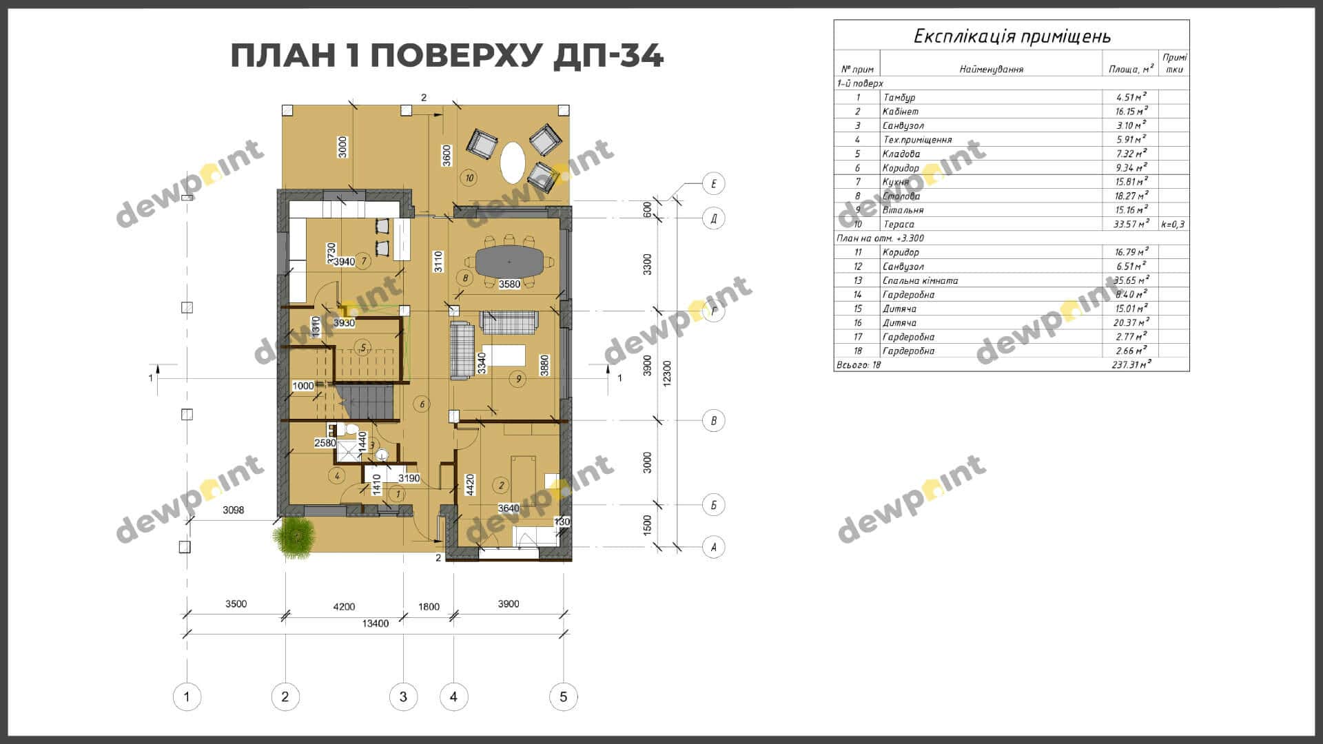 Площа терас: 34 м2
