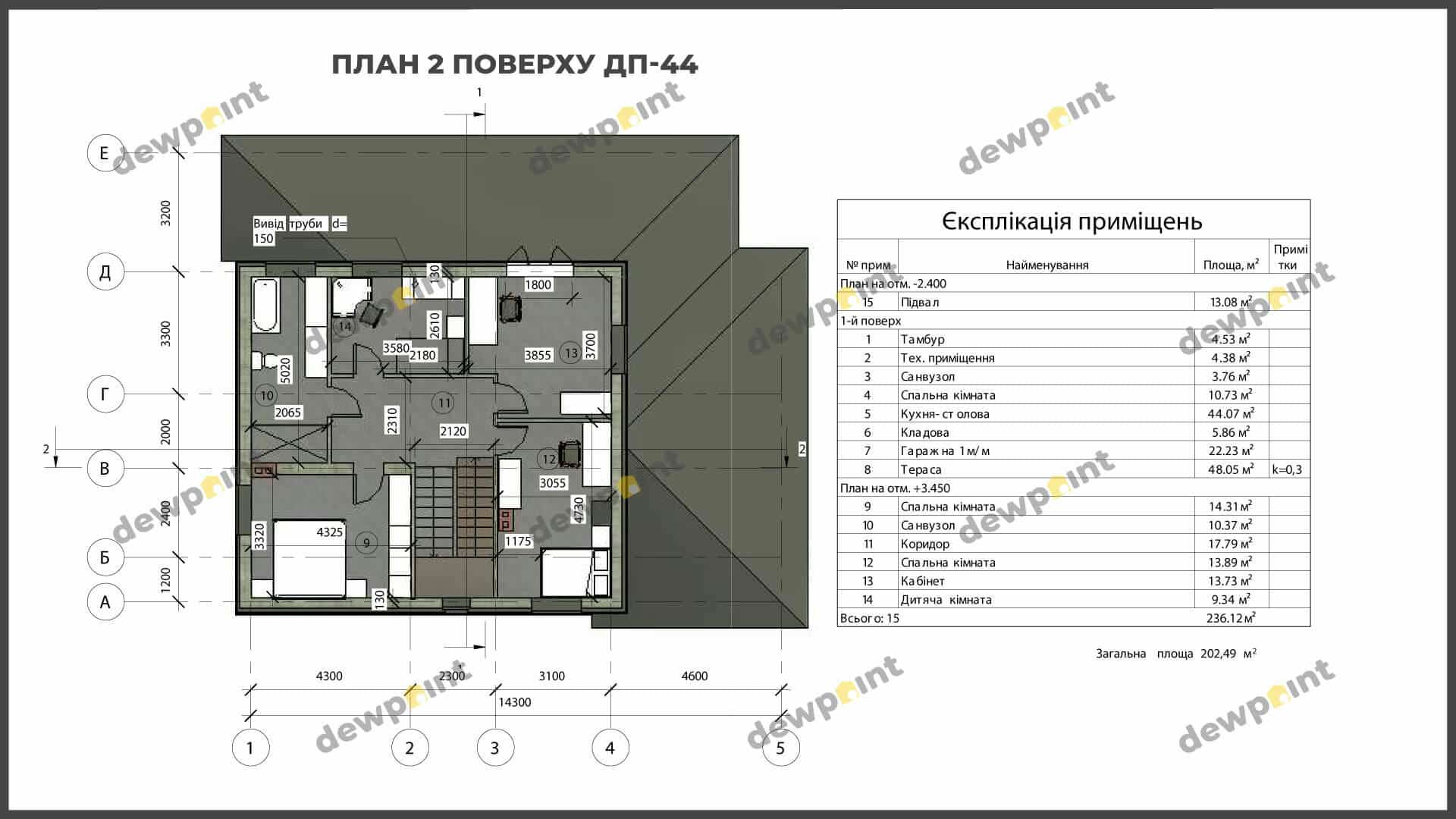 * У розрахунок не входять: тераси, навіси, балкони, димоходи, каміни, сходи на 2 поверх, міжкімнатні двері