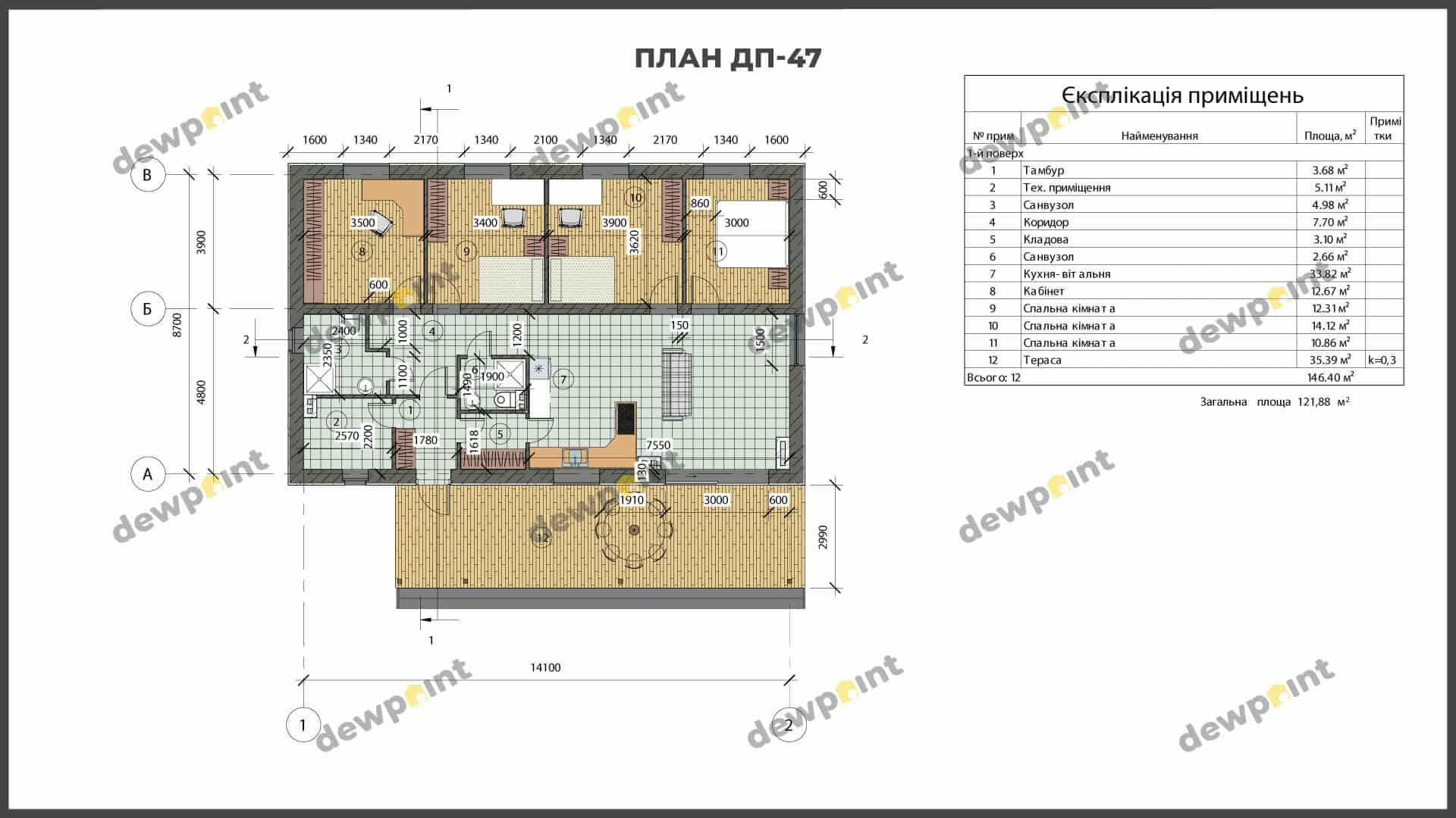 Загальна площа: 121 м2