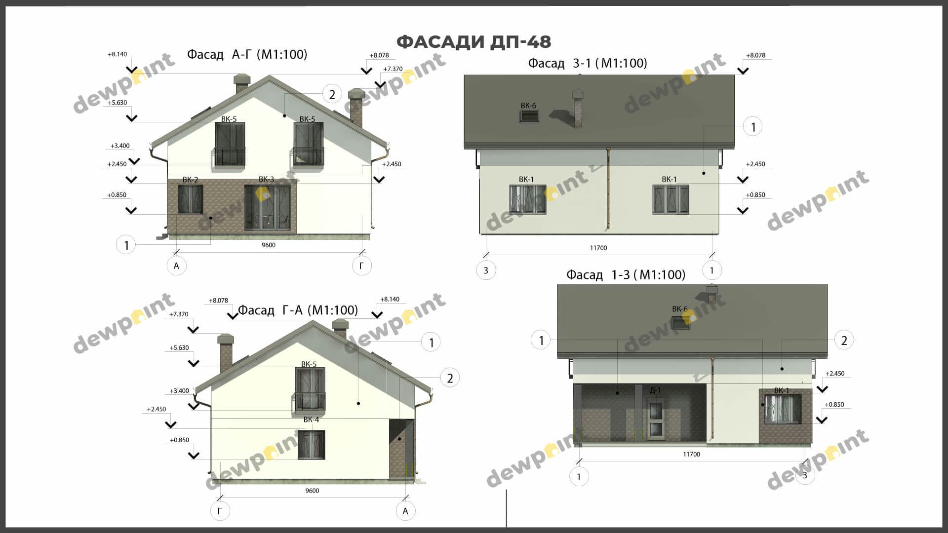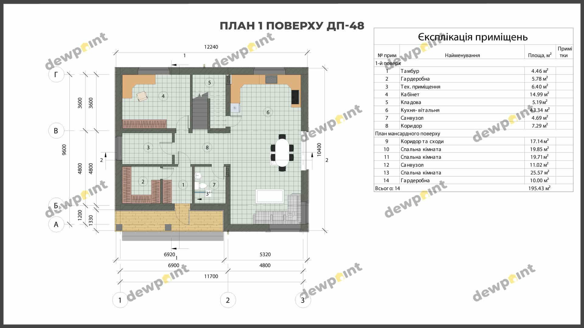 * У розрахунок не входять: тераси, навіси, балкони, димоходи, каміни, сходи на 2 поверх, міжкімнатні двері