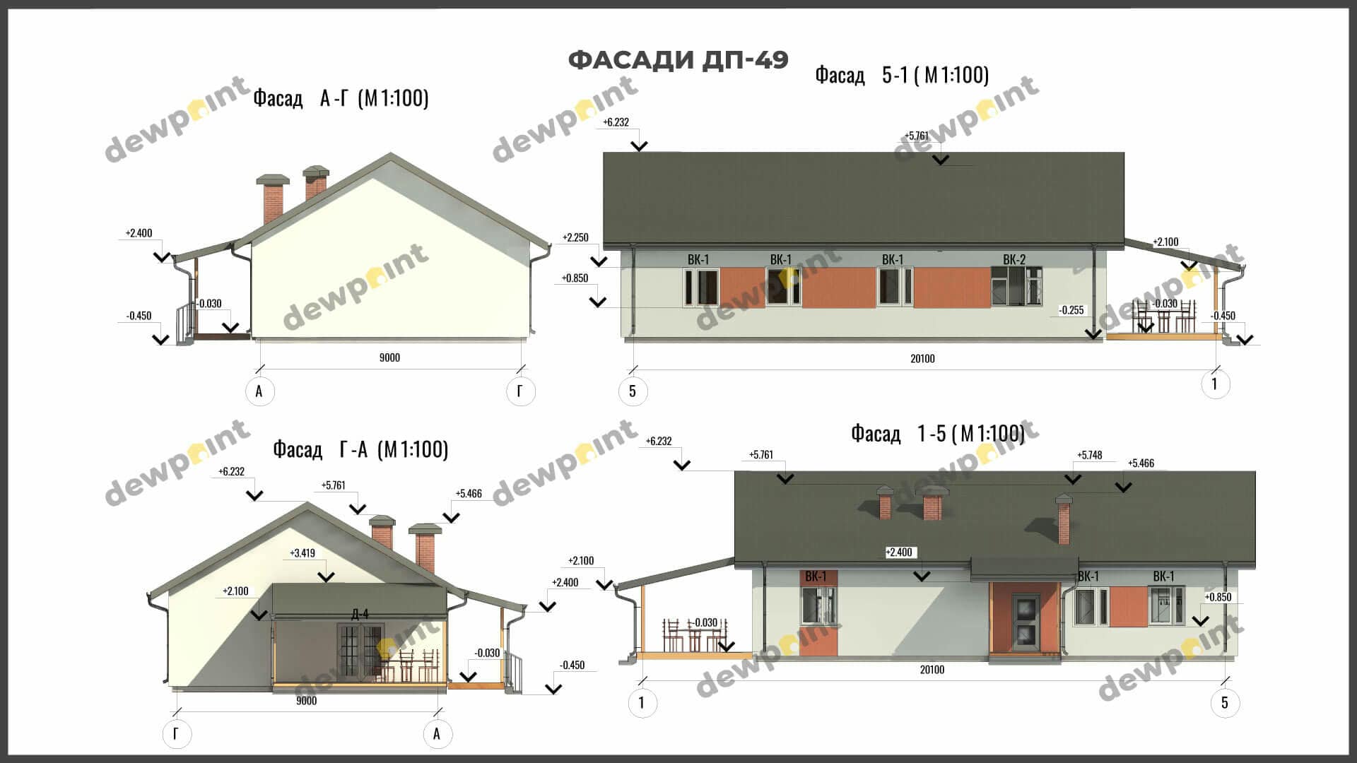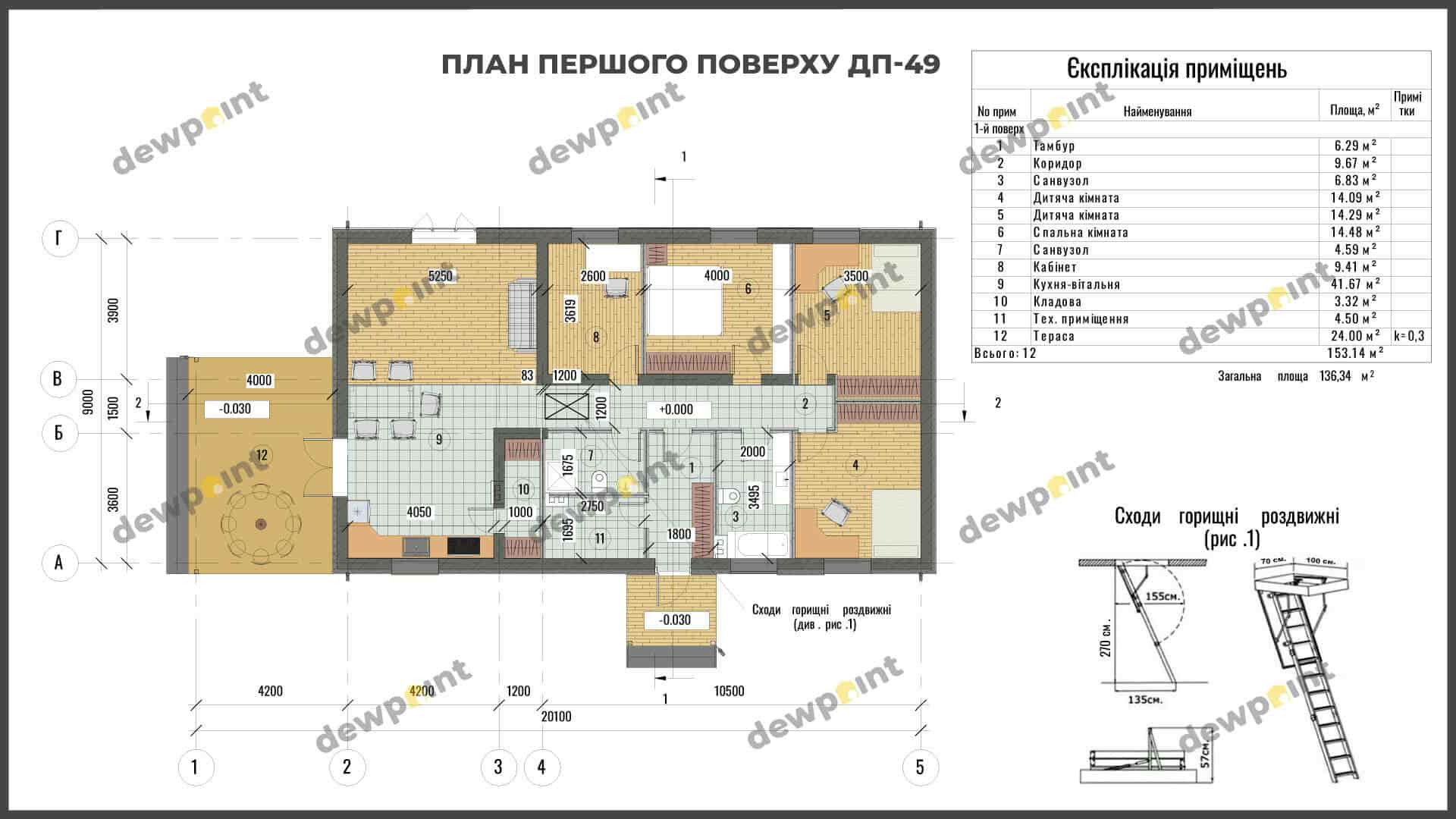 * У розрахунок не входять: тераси, навіси, балкони, димоходи, каміни, сходи на 2 поверх, міжкімнатні двері