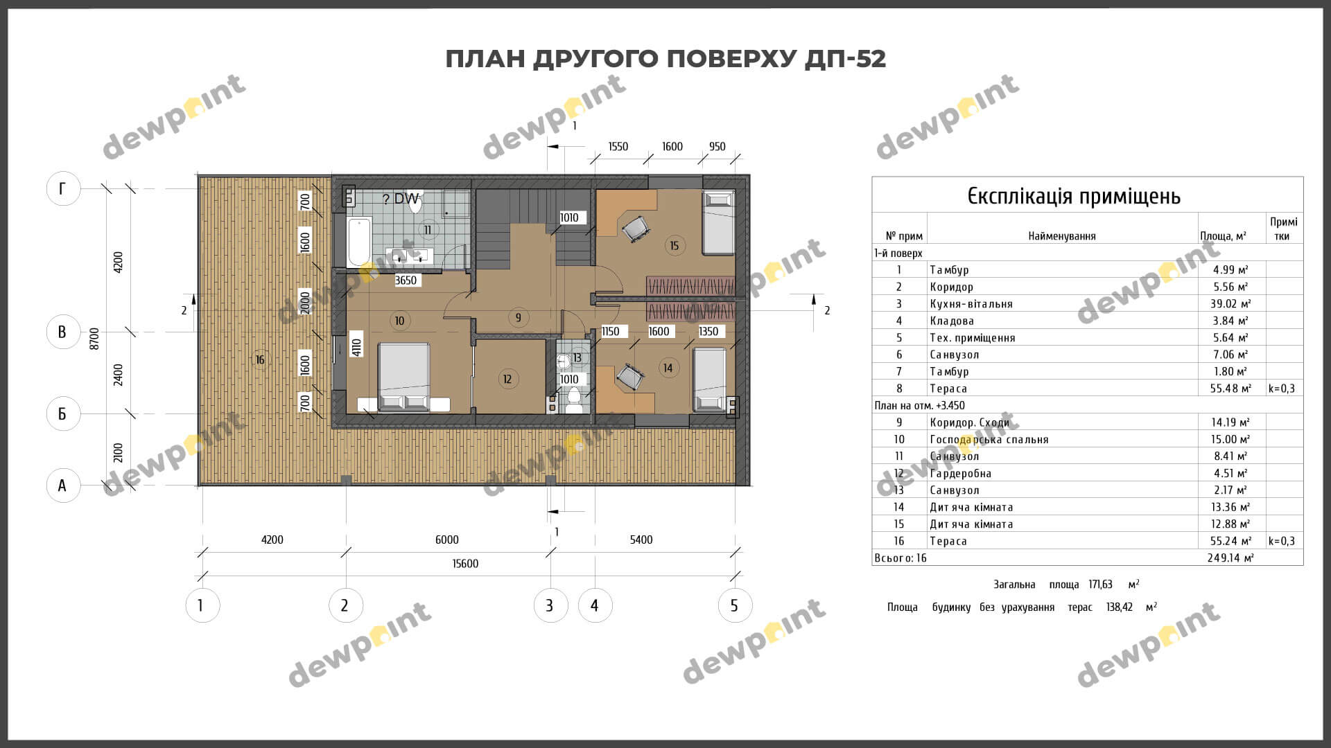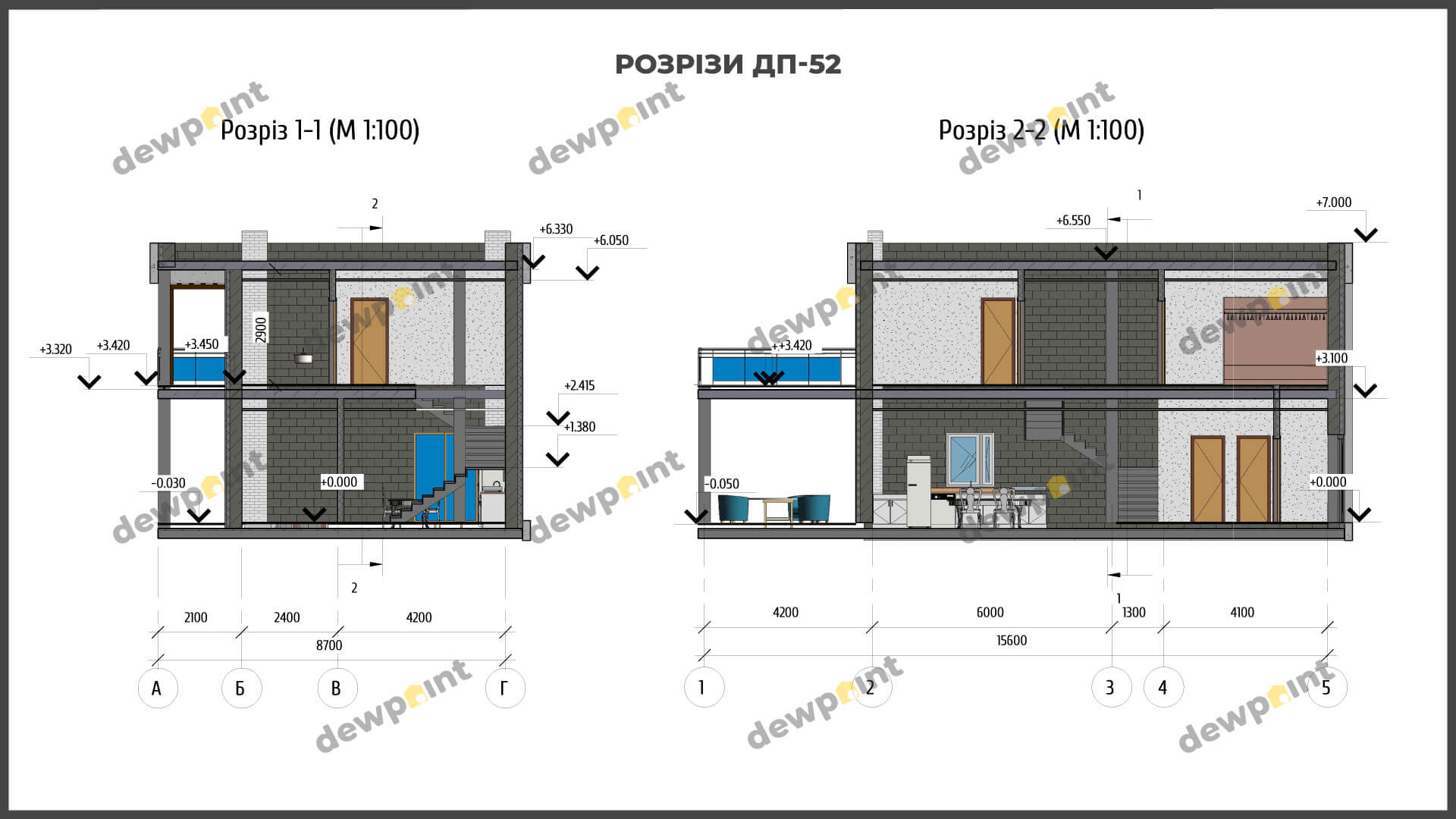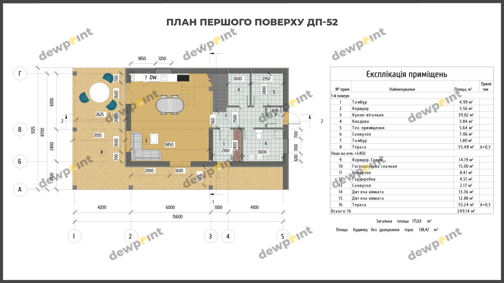 * У розрахунок не входять: тераси, навіси, балкони, димоходи, каміни, сходи на 2 поверх, міжкімнатні двері