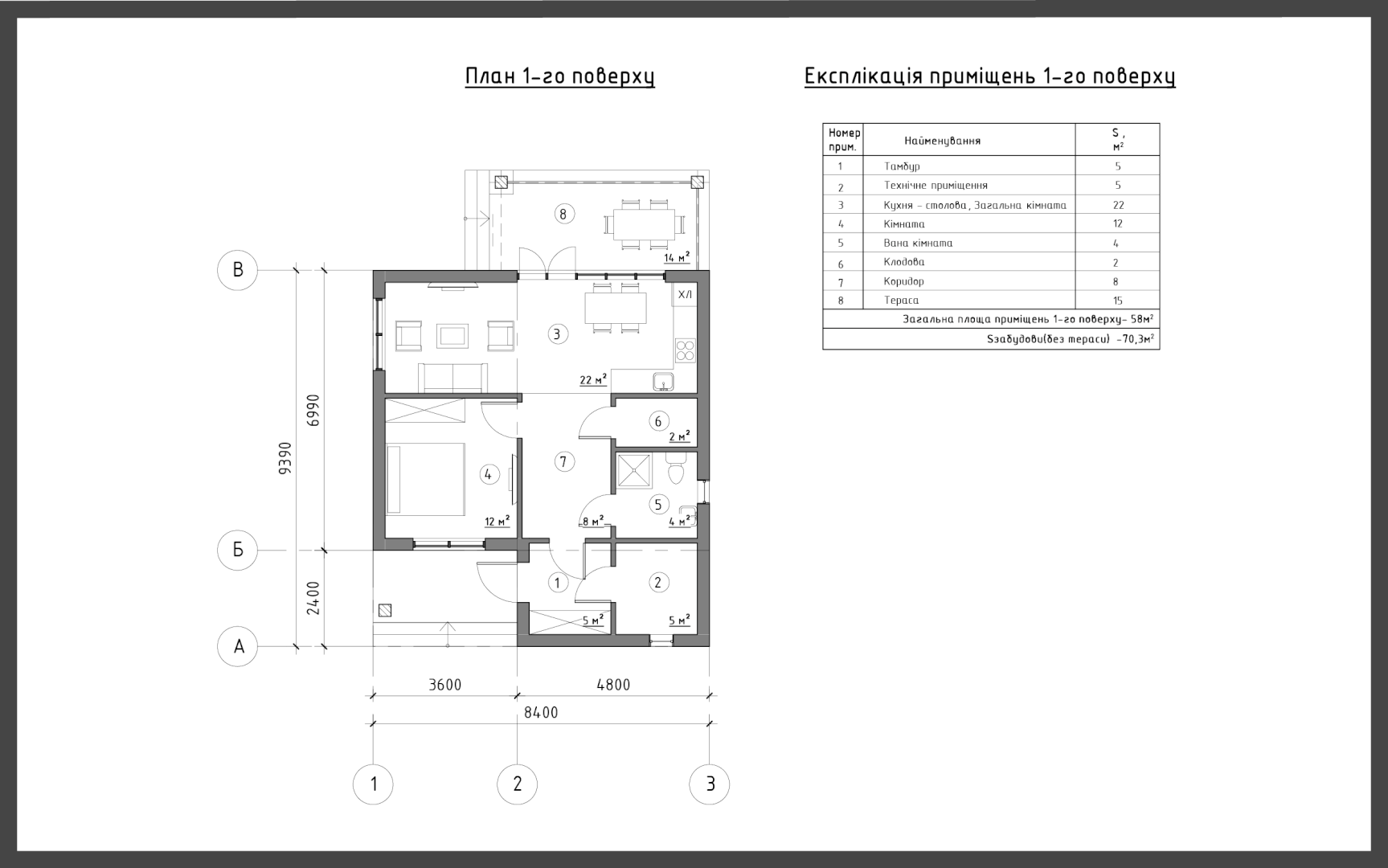 Компактний і затишний будиночок площею 70 кв.м. підійде як для молодої сім’ї, так і для старшого покоління. Зручне і продумане планування не залишить Вас байдужими!