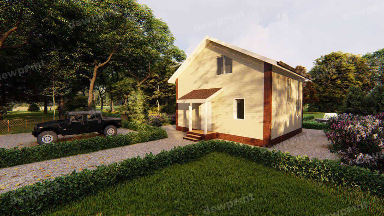Цей 2-поверховий будиночок з мансардним поверхом підійде як для дачі, так і для постійного проживання.
