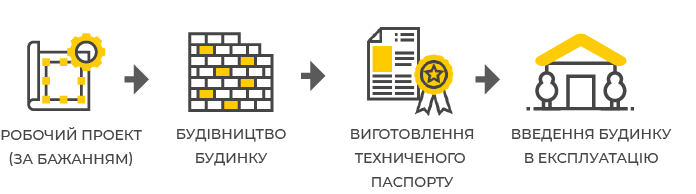 На підставі ЕНЗ необхідно замовити будівельний паспорт і подати повідомлення про початок будівельних робіт до Центру надання адміністративних послуг (ЦНАП) особисто або онлайн https://e-dabi.gov.ua. По закінченню робіт викликають інженера-техніка для виготовлення технічного паспорта (раніше це робило БТІ, зараз приватні експерти). Далі подається декларація про введення об’єкта в експлуатацію, присвоюється поштова адреса. Після чого у нотаріуса реєструється право власності на будинок.