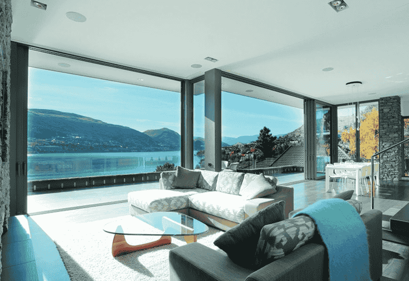 Головна перевага алюмінієвих вікон і дверей – можливість скління великих площ. Алюмінієва конструкція завжди буде легше, ніж металопластикова (яка ще й обмежена за розміром).